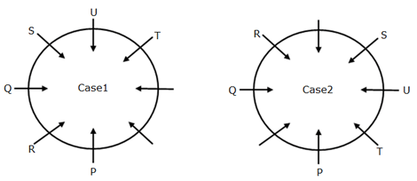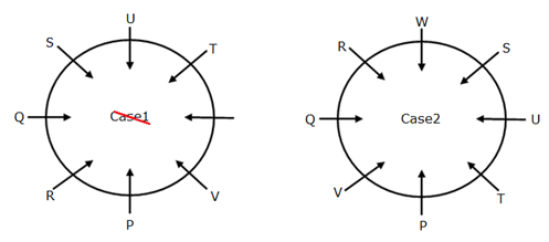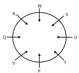 Eight persons- P, Q, R, S, T, U, V and W are sitting around a circular table and facing inside the circle, but not necessarily in the same order.