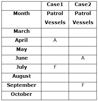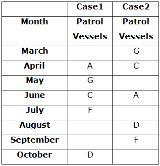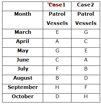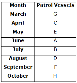 Eight Patrol vessels- A, B, C, D, E, F, G and H were decommissioned in eight different Months- March, April, May, June, July, August, September and October of the same year but not necessarily in the same order.