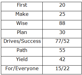 ‘Plan Drives Success Path’ is coded as ‘77 55 52 30’