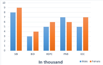 The number of male and female probationary officers in various banks