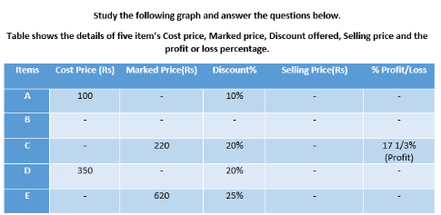 Q. The seller marked the price of the item D same at its Cost price. Find the profit/loss percentage on item D?