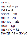 In a certain code language, ‘more money in market’ is written as ‘zo pi ab to’, ‘share in market loss’ is written as ‘vo to je pi’, ‘making more loss now’ is written as ‘su je zo ka’, ‘now the market gains’ is written as ‘do pi yo su’.