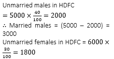 Q. In HDFC 40% males and 30% females are unmarried, then what is the ratio of the married males to the married females in HDFC?