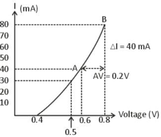 For the given V-I characteristic find out the value of dynamic resistance Rac?