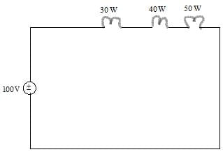 Three light bulb are connected in series to a 100V battery. Find the current through a bulb.