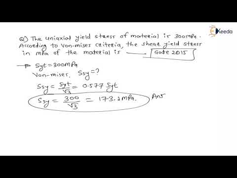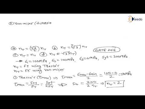 | Von Moses and Henkys theory (Distorsion Energy or Shear Strain Energy Theory) | GATE Machine Design 45:32 min |  |