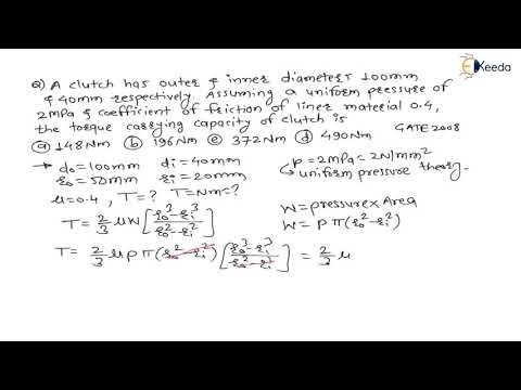 | Torque and Friction Losses | Design of shafts; keys and Bearings | GATE Machine Design 16:30 min |  |