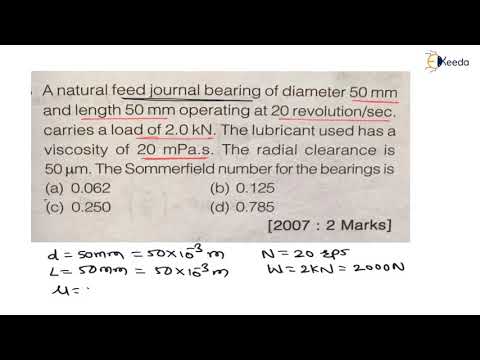 | Numerical 15: Sommerfield Number | Design of shafts; keys and Bearings | GATE Machine Design 05:09 min |  |